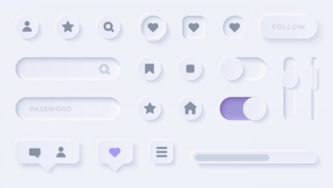객체와 배경을 그림자/빛만으로 구분해 눌러보고 싶게 생긴 부드럽고 입체감있는 디자인을 말하는데요,