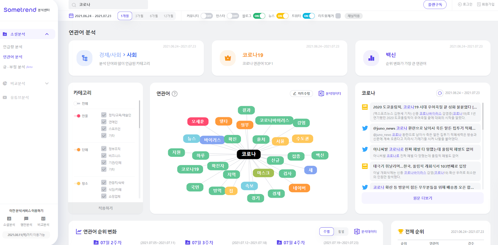 따라서 언급량 / 연관어 분석을 모두 확인해보았는데요.