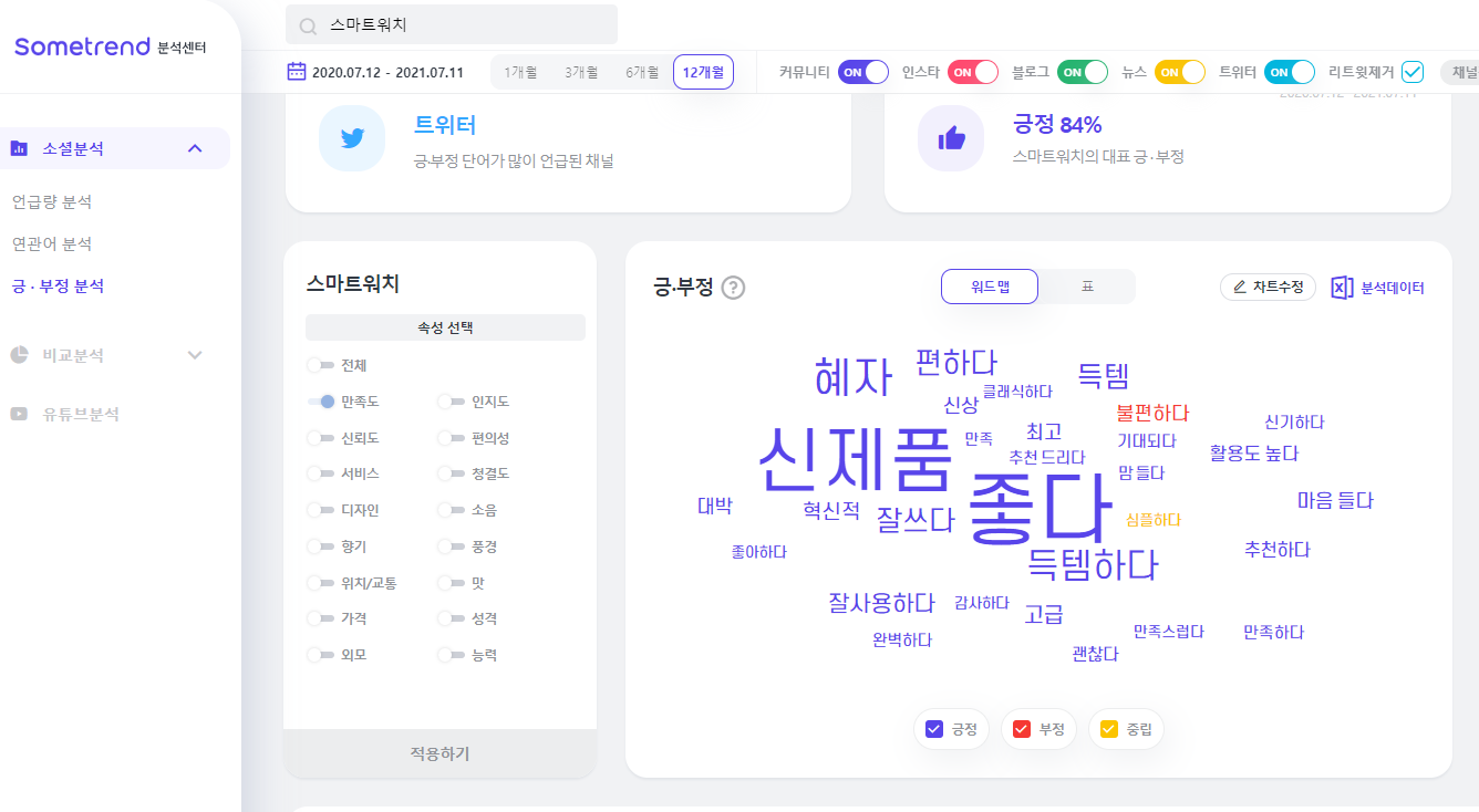 긍부정 속성 중에서도 만족도를 선택했는데요.