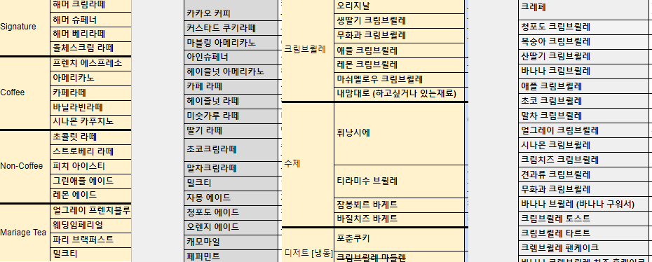 처음에 욕심이 너무 많아서 메뉴를 막 2~30개씩 하려고 했다가 친구들한테 혼났었습니다.